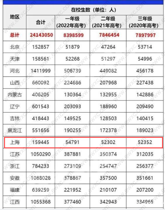 同河南125万的高考人数相比,上海5万的高考人数几乎是河南考生的一个零头。