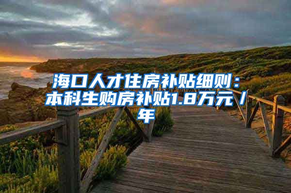 (海口人才住房补贴细则:本科生购房补贴1.8万元/年)