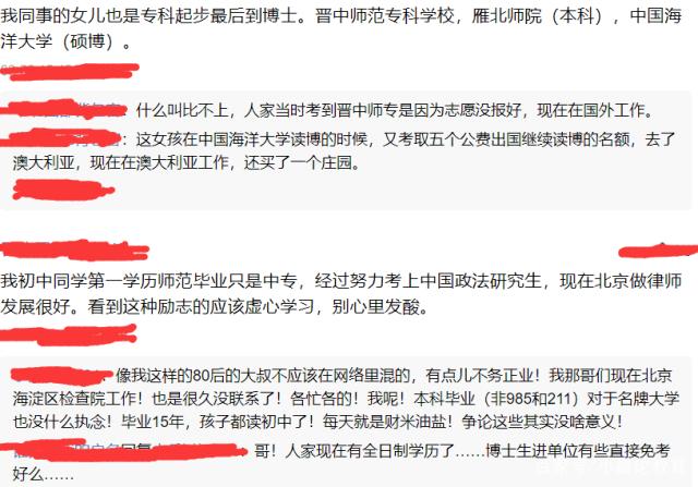 看完这个女孩的经历,我不禁感叹到:“真励志!这给专科生做了一个很好的榜样”,一个专科生能专升本成功就够不容易了,但她不仅成功升了本,还考上了985大学硕士、985大学博士,简直是专科生们的“活教材”,所以我很敬佩她,但是不少网友在了解到这个女孩的经历之后,不仅没有鼓励她,反倒是说:“那又怎么样?第一学历永远是专科”。