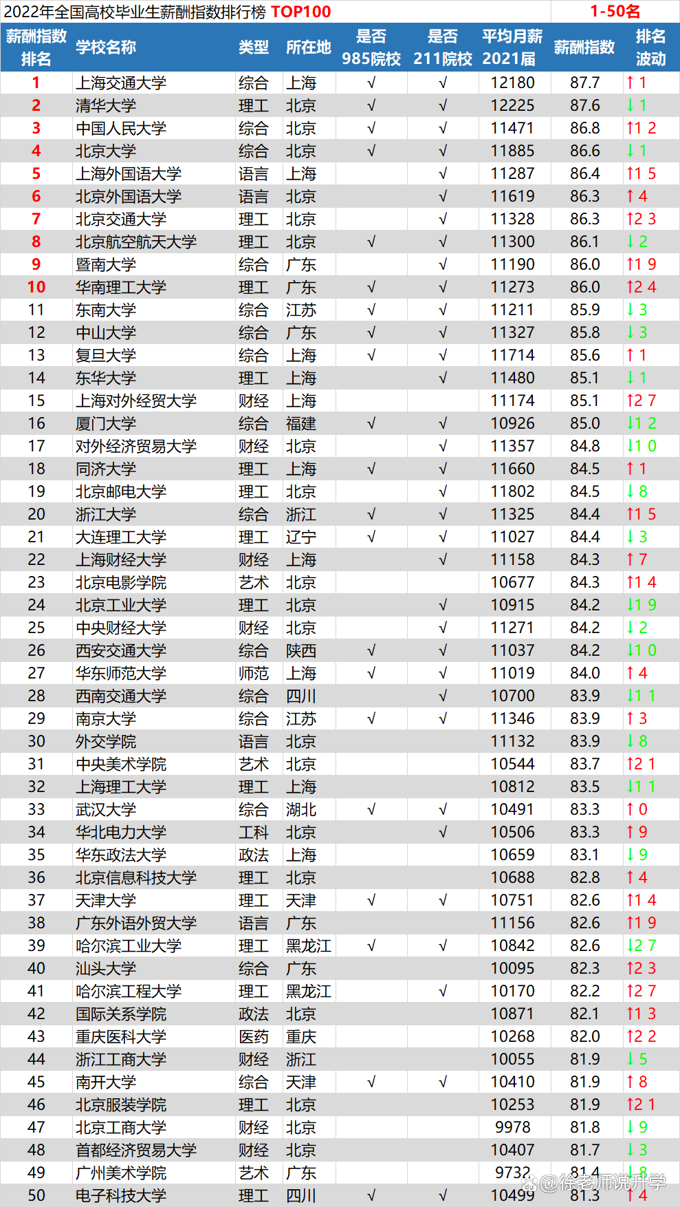 (2022全国高校毕业生薪酬指数排行榜TOP100公布!猜猜第一名是谁?)