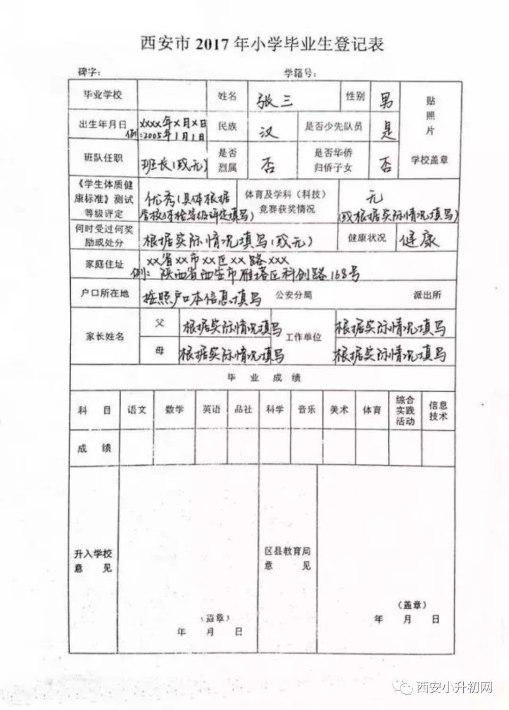 持户口薄、《小学毕业生登记表》、《学籍信息登记表》和小学毕业相关资料。于6月25日前到雁塔区教育局基础教育科办理。