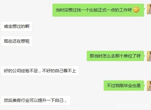今天想跟大家分享我大学室友的故事:我们学校是个非常普通的三本院校,毕业后,她曾经来过上海,也想在上海找工作,求职无果后,选择了一个二线城市在一家美容机构做了服务员,负责客户的接待,顺便学习美容知识。