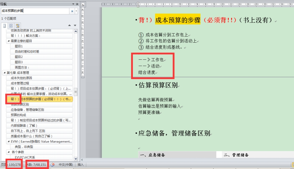 有的时候题目要求很低,没有给什么特别的子题目,只要按10大领域的原始框架背诵进去就可以了。但是这几年都会有子题目的,就是上面提到的,题目2.1“项目成本管理的过程”。这个必须结合到成本管理的论文里头一起写进去,才可以。常考的子题目,我都写在笔记里头了,所以笔记里头带【背】的都得去背一背。