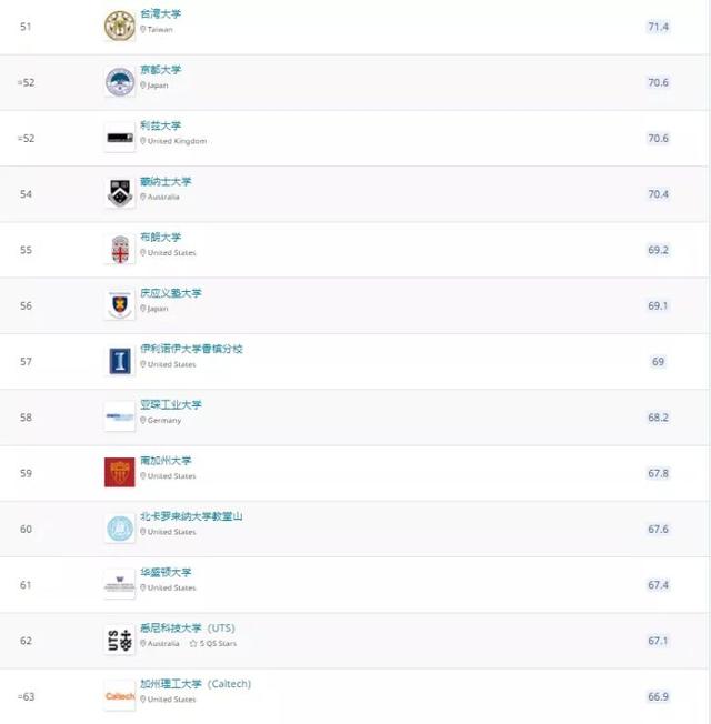 其余上榜的还有以下大学: