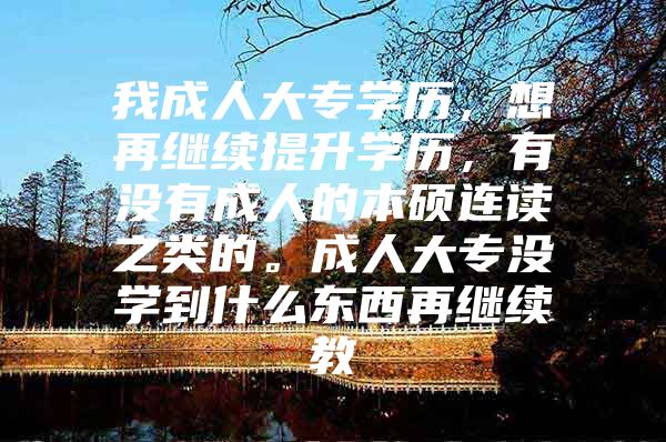 (我成人大专学历,想再继续提升学历,有没有成人的本硕连读之类的。成人大专没学到什么东西再继续教)