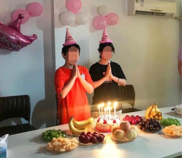 昨天,小樑(右)在杨浦区救助管理站困境儿童保护中心参加集体生日会。杨浦区救助管理站供图