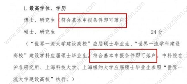 “世界一流大学建设高校”应届硕士毕业生、“世界一流学科建设高校”建设学科应届硕士毕业生,符合基本申报条件即可落户上海。