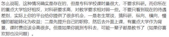 思来想去,决定开学后跳槽到专科学校去,日子清闲,职称好评,博士待遇给的还好,干嘛在所谓的双一流大学里,为了争一门课,而卑躬屈膝的做人!不知道这种专科待遇好于本科的情况是特殊的,还是普遍存在的,以及我跳槽的想法是否是正确的,请各位大神给支招!