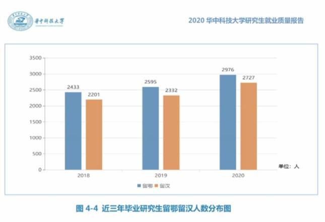 数据还显示,最近三年,华科大毕业研究生留鄂、留汉的人数逐年增多,说明武汉的人才吸引力逐年增强。