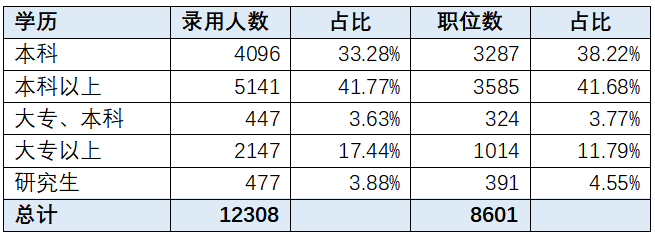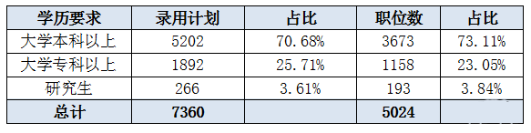 从近几年公务员招录条件来看,对于学历要求呈现逐年提高的趋势,从全国范围内来看,基本上是以本科学历为主体,这就让众多专科生心生忧虑,不知道能否有资格参加公务员考试。我们来看下具体的招考数据: