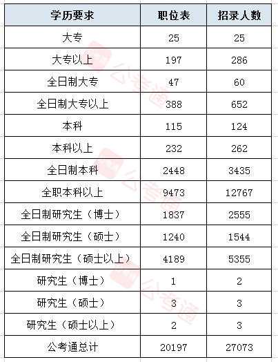 以2019广东省公务员考试为例,大专生可以报考的职位数有1435个,占比18.1%,招录人数为3333,占比26.8%。