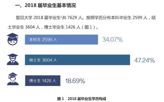 1、复旦大学:2018届毕业生共7629人。其中,本科生2599人,硕士生3604人,博士生1426人。本科比例34.07%,硕士比例47.24%,博士比例18.69%。