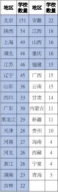 学校所在地区也是一个重要因素。如果想在上海就业和发展,当然应该优先考虑上海的学校。这样毕业季实习和找工作都比较方便,此外上海学校的毕业生落户也比外地学校有优势。另外不同地区的国家线也不同,全国省市分为一区和二区,具体划分和各省学校数量如图5所示: