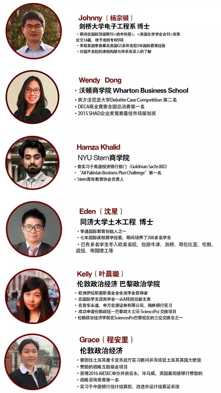 G5预备营中的项目导师均来自于世界顶级名校,其中包括剑桥大学博士,沃顿商学院,纽约大学Stern商学院,伦敦政治经济,帝国理工以及巴黎政治学院等顶级的导师团队保证高质量的课程教学,真正的交流、学习、提升
