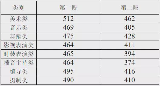 2.艺术类第二批专业省统考各类别综合分分段线