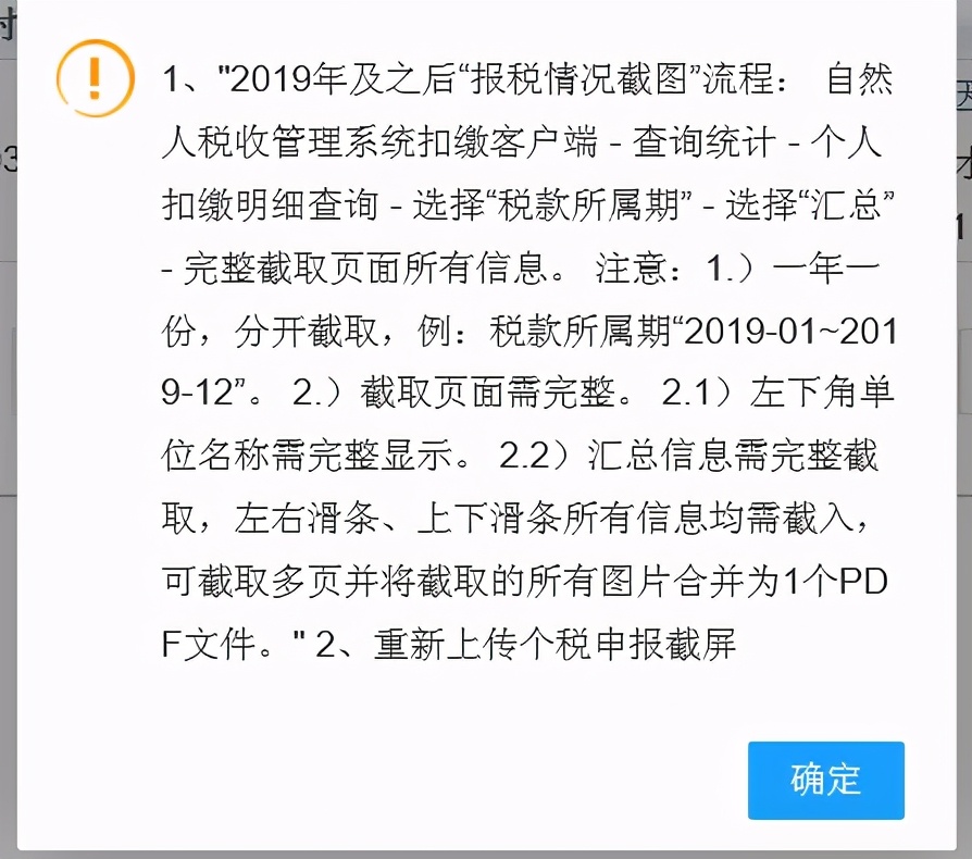 案例分析:2019年及之后报税情况截图不完整,系统直接给出了截图的完整步骤。