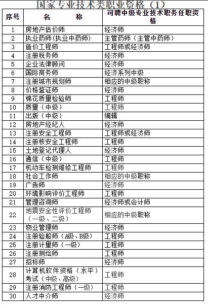 (上海居转户中级职称有哪些 上海市中级职称目录表 积分落户认可的中级资格)