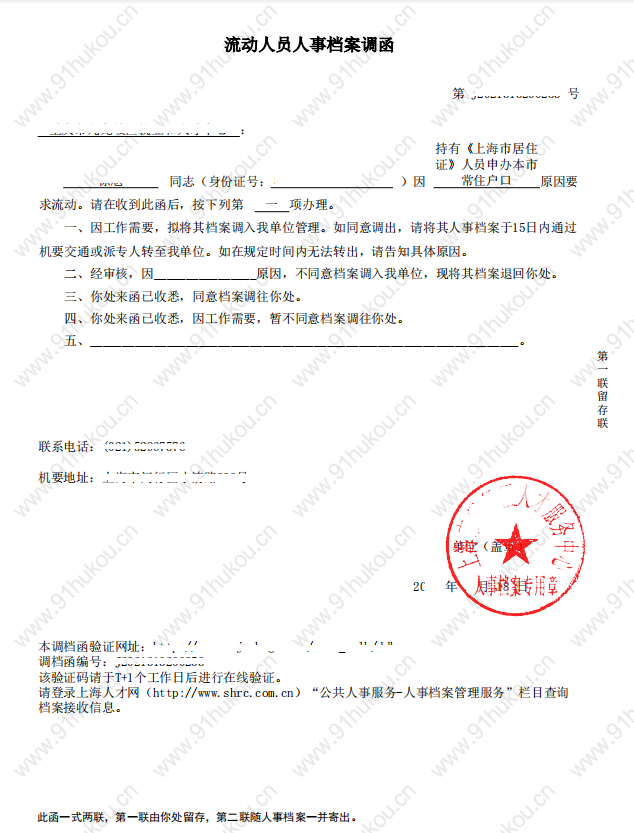 温馨提示:查询人事档案,可登录上海人才服务网可查询档案状态。