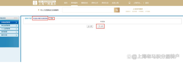 步骤十二:如使用专业技术职务任职资格条件申报,需进行相应内容填写,点击