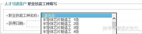 技能类人才按照系统提示选择申请人所获得的职业技能工种名称,并填写获得日期。