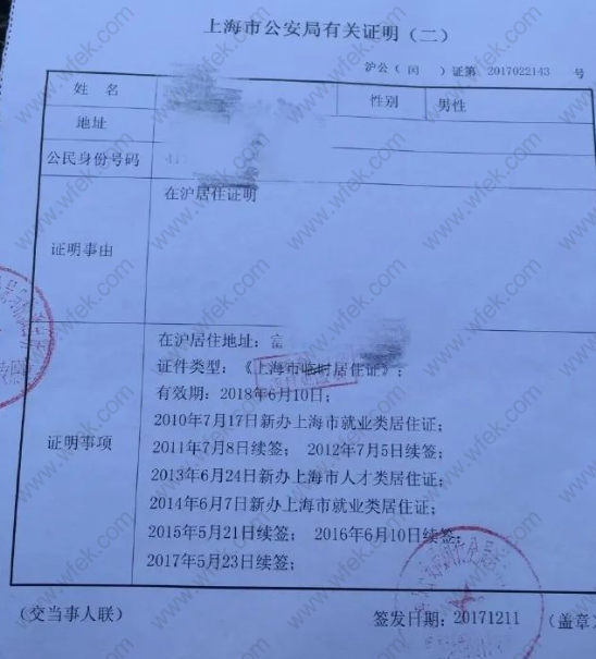 - 上海居转户 现居住地计划生育证明