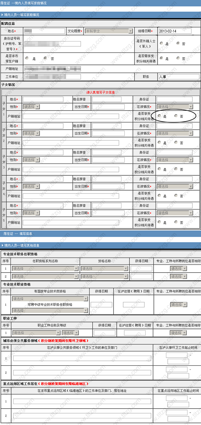 绝大部分用户办理积分都是为了孩子上学,所以在填写子女情况一栏中,一定要注意勾选享受积分相关待遇:是。