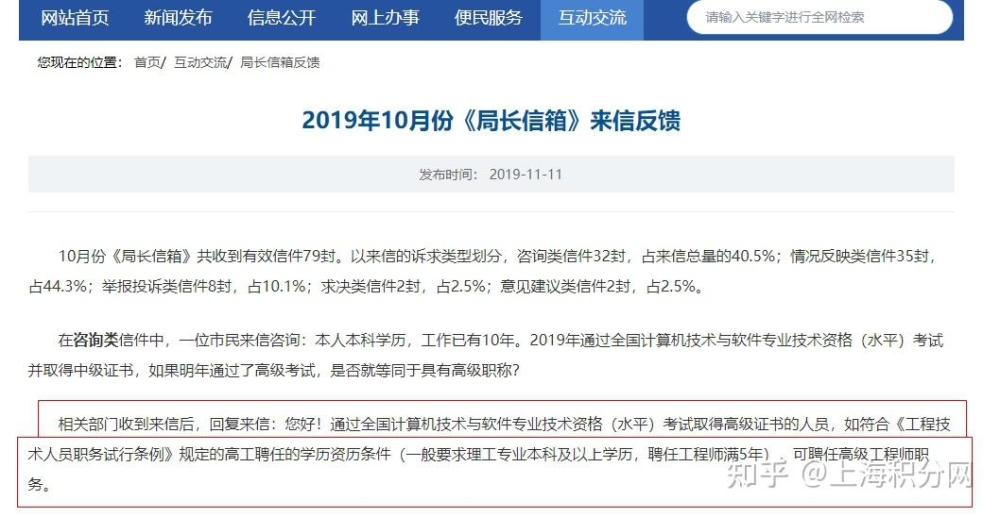 1、上海人保局官网-2019年10月份《局长信箱》来信反馈: