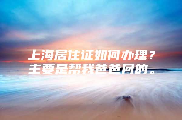 (上海居住证如何办理?主要是帮我爸爸问的。)