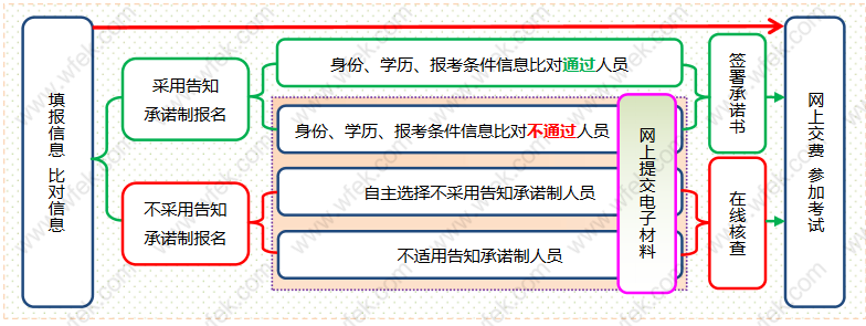 2.未选择告知承诺制或者不适用告知承诺制的考生,在网上填报信息后,需要去现场进行核查,并提供相关纸质工作证明材料,也可采用网上提交电子版证明材料方式辅助进行线上核查,具体方式以当地官网要求为准。