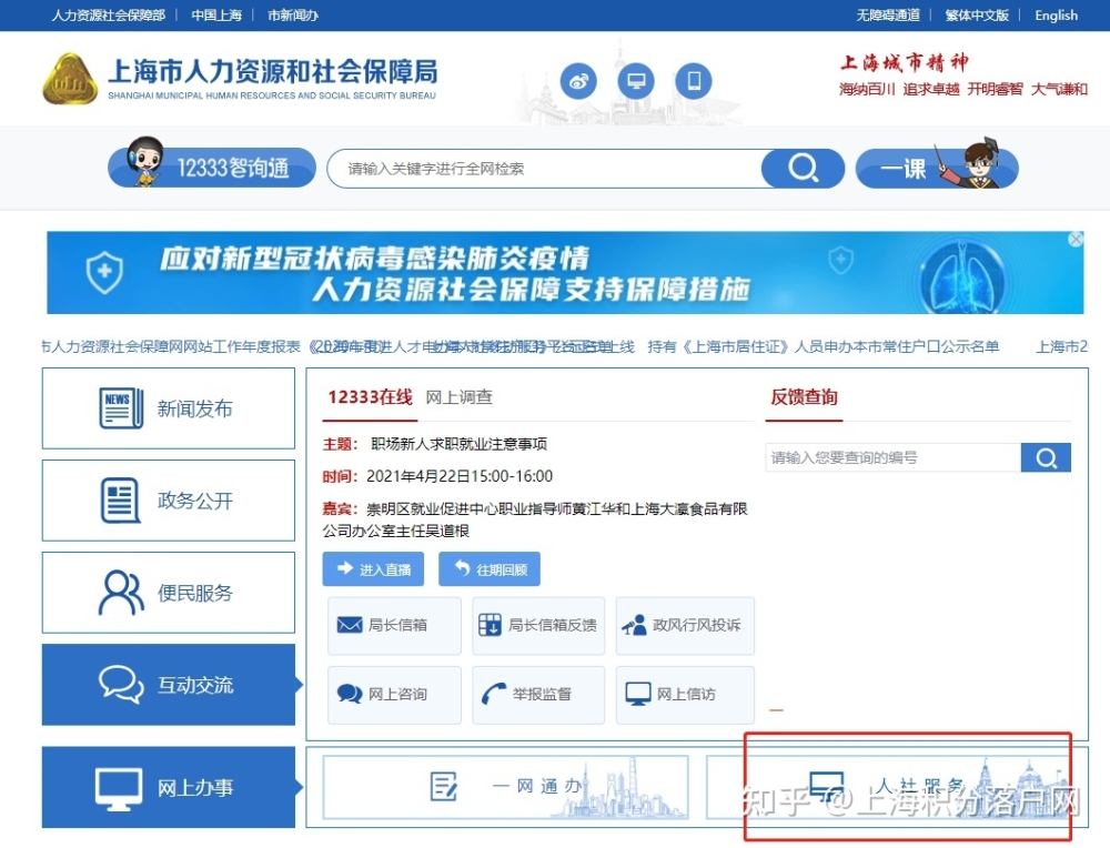 1、上海人力资源和社会保障局官网: