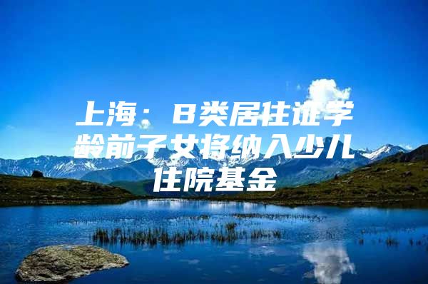 (上海:B类居住证学龄前子女将纳入少儿住院基金)