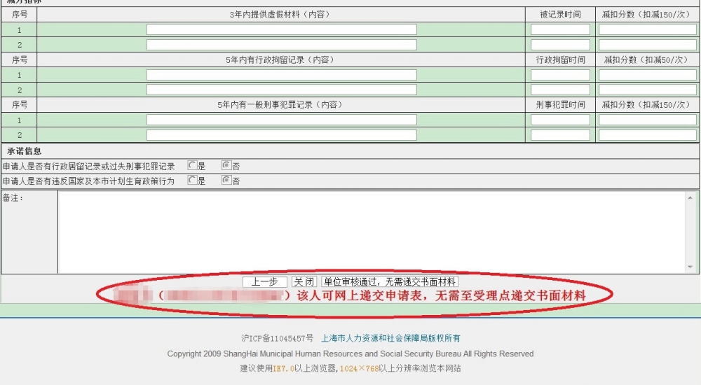 六、如通知中查见为积分网审不通过人员,提示需要按照积分正常续办流程准备材料,请提供书面材料,由单位联系人递交至受理网点