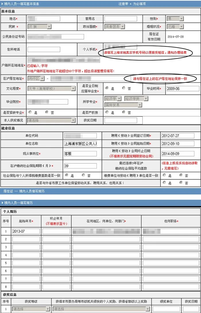 2、在沪居住地址:一定要按照居住证上的地址填写,如果现居住地已经更换: