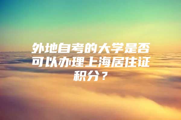 上海居住证积分网陈老师回答:同样的问题,同样的回答,外地学历申请积分,只有3种可以,1:户籍所在地读的大学。2:外地大学在上海有学习中心,且办理者在上海学习中心报读该大学。3:上海本地大学。(所有前提是这些学历都是国家承认的真实学历。包括统招、自考、网教等)