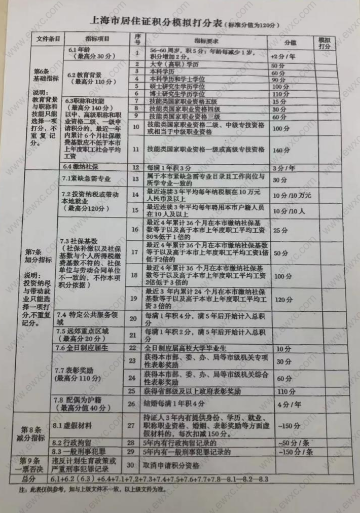 - 上海市积分模拟打分!居住证积分120分模拟打分器