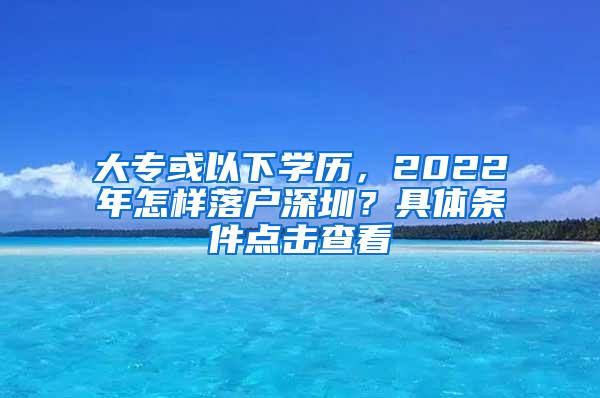 (大专或以下学历,2022年怎样落户深圳?具体条件点击查看)
