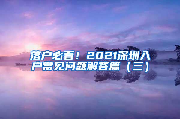 (落户必看!2021深圳入户常见问题解答篇(三))