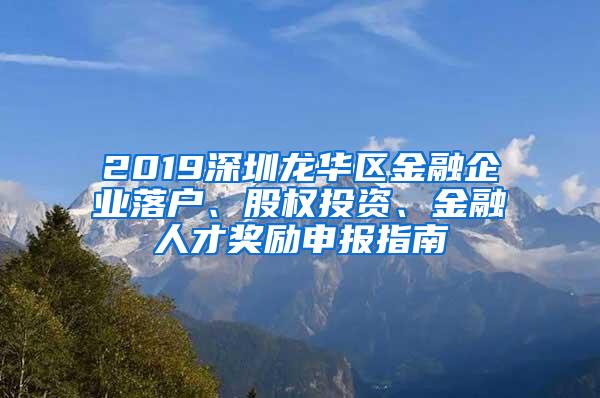 (2019深圳龙华区金融企业落户、股权投资、金融人才奖励申报指南)