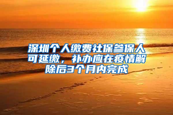 (深圳个人缴费社保参保人可延缴,补办应在疫情解除后3个月内完成)